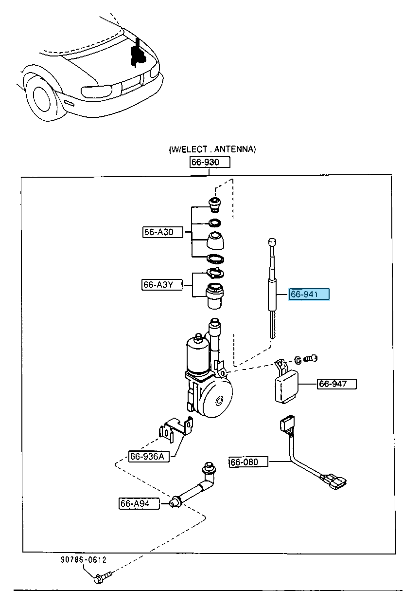 MAZDA MIATA MX-5 NA NA8C 1994-1997 Genuine Electric Antenna Mast N007-66-A3X OEM