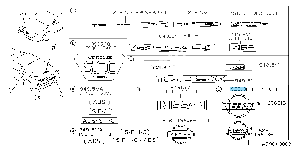 NISSAN 180SX: " KRPS13 RPS13 RS13" Manufacturer Part Number: " 62890-51F00"