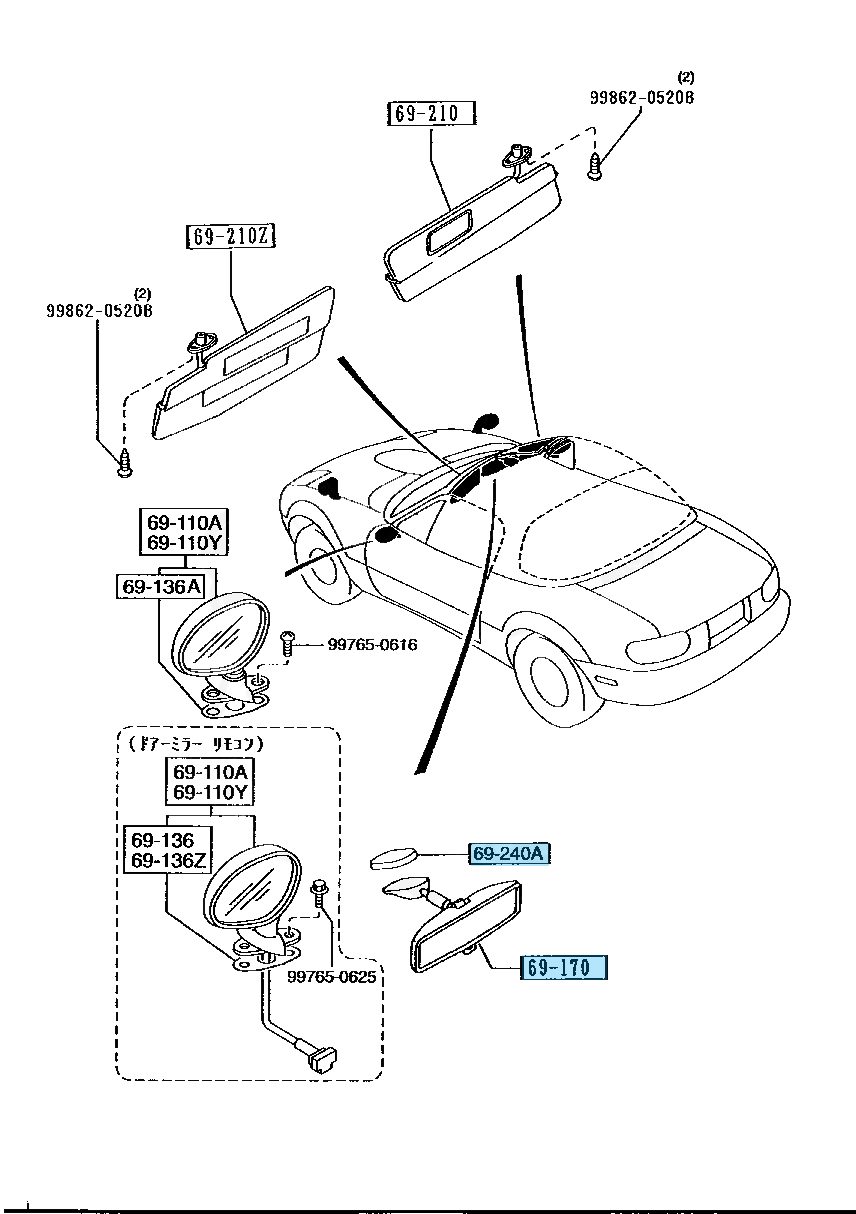 MAZDA ROADSTER MX-5 NA8C Genuine Interior Room Rear View Mirror & Base Set OEM