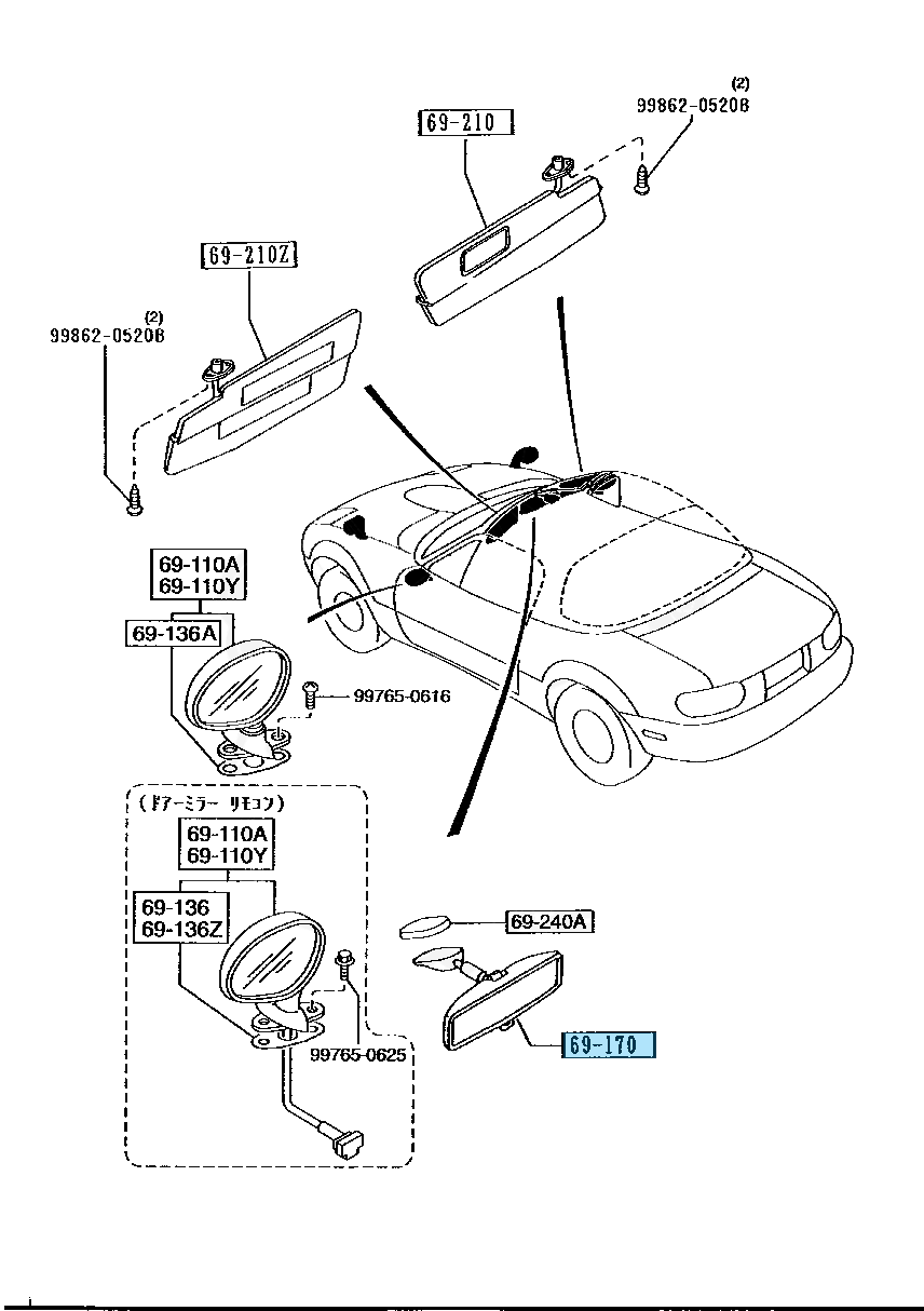 MAZDA MX-5 MIATA NA8C Genuine Interior Room Rear View Mirror B01W-69-220A OEM