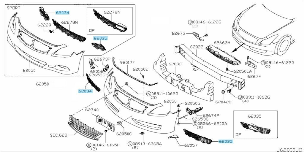NISSAN SKYLINE: " CKV36" OE/OEM Part Number: " 62256-JL10B,62257-JL11B"
