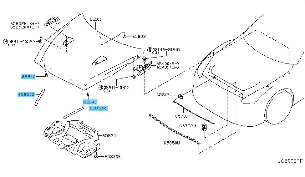 Brand: " Nissan" OE/OEM Part Number: " 65829-39B0A(x2),65822-JF02A,65823-JF02A"