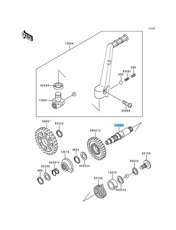 KAWASAKI KX250 1996-1998 Genuine Kick Starter Shaft 13066-1091 OEM