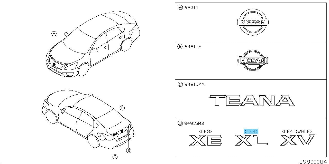 NISSAN TEANA L33 Genuine Trunk Lid Emblem "XL" 84896-3NU2A OEM