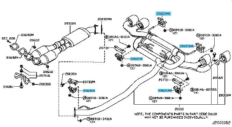 OE/OEM Part Number: " 20651-JF00A,20621-KB50A,20621-KB50B,20651-KB50A(x2)" Note: " Front right side of main exhaust muffler"
