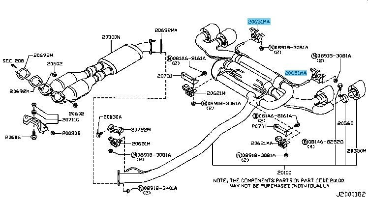 OE/OEM Part Number: " 20651-JF40A(x2)" Note: " Rear of main exhaust muffler, right and left sides"
