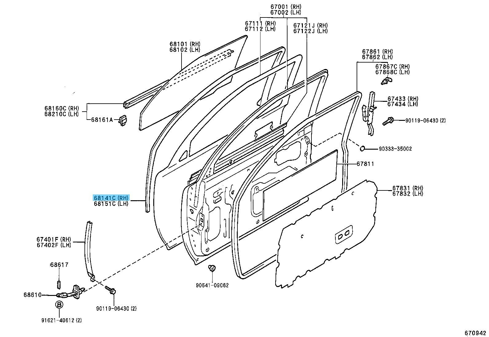 Note: " For 2 door, without vent." TOYOTA PICKUP '89-95(2): " VZN110L LN200L LN80R LN81L LN85 LN86L"
