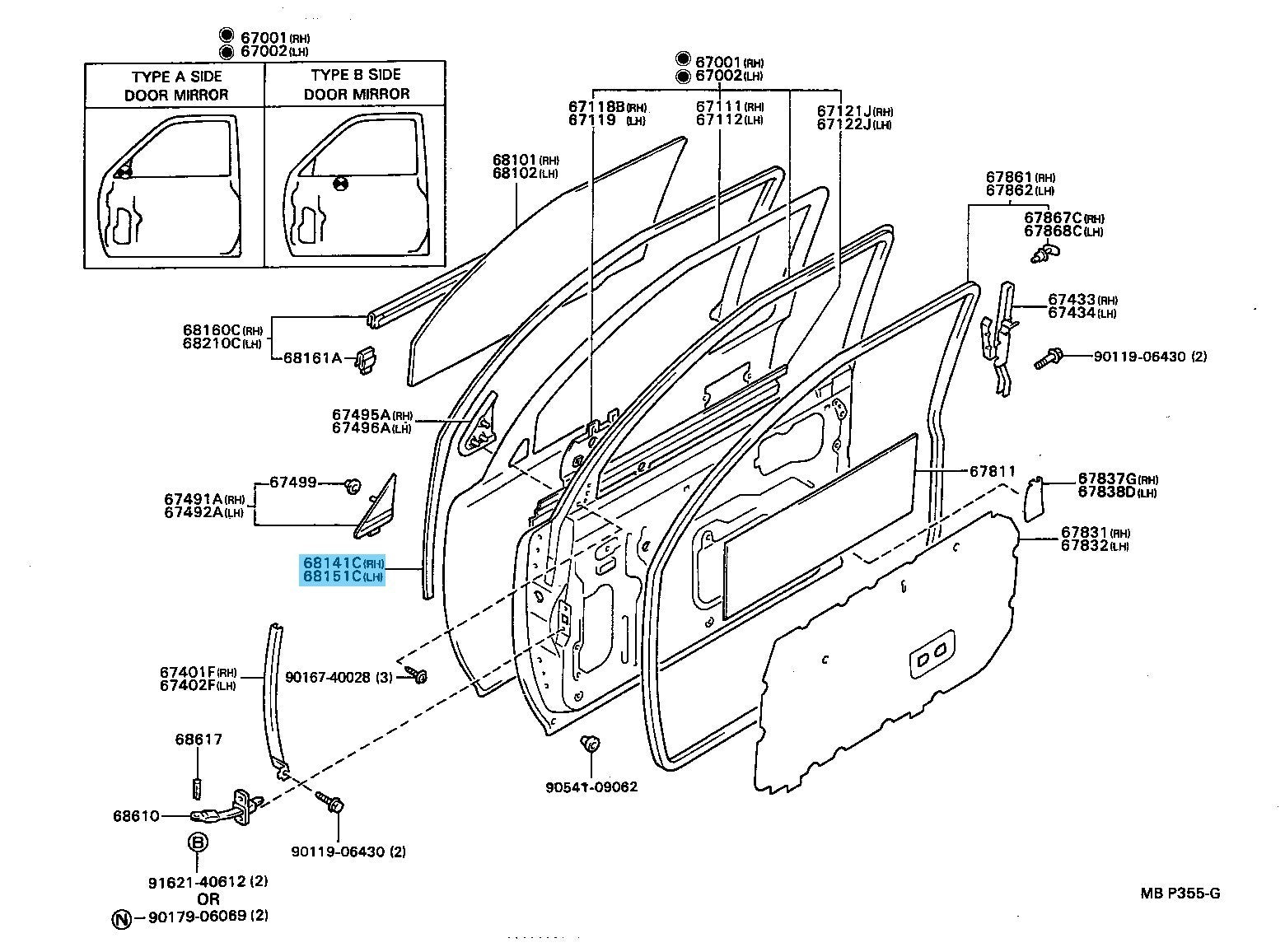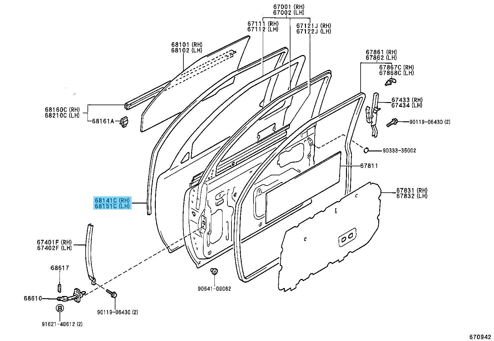 Brand: " Toyota" OE/OEM Part Number: " 68141-89115,68151-89107"